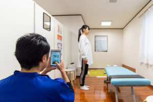 触診・検査で不調の箇所を確認します。姿勢分析撮影で姿勢、歪みを確認します。