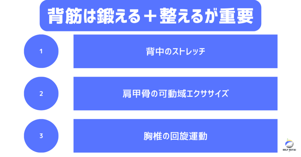 背筋は、ゴルフスイングのパワー・安定性・姿勢維持を支える重要な筋肉群です。