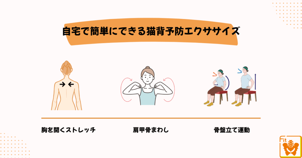 座り姿勢を変えるだけで猫背の戻りを防ぎやすくなるため、最も重要なセルフケアです。