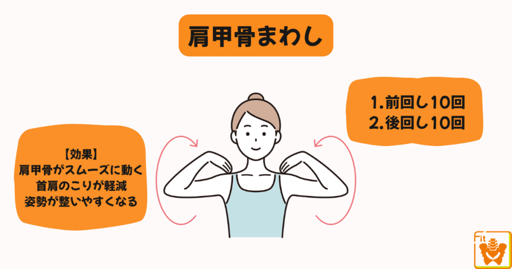 - 肩に手を添える(肘を大きく動かすイメージ)