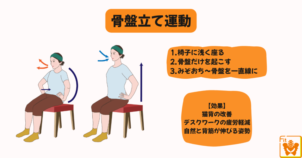 逆に骨盤が立つと、背骨は自然にスッと伸び猫背は大幅に改善しやすくなります。